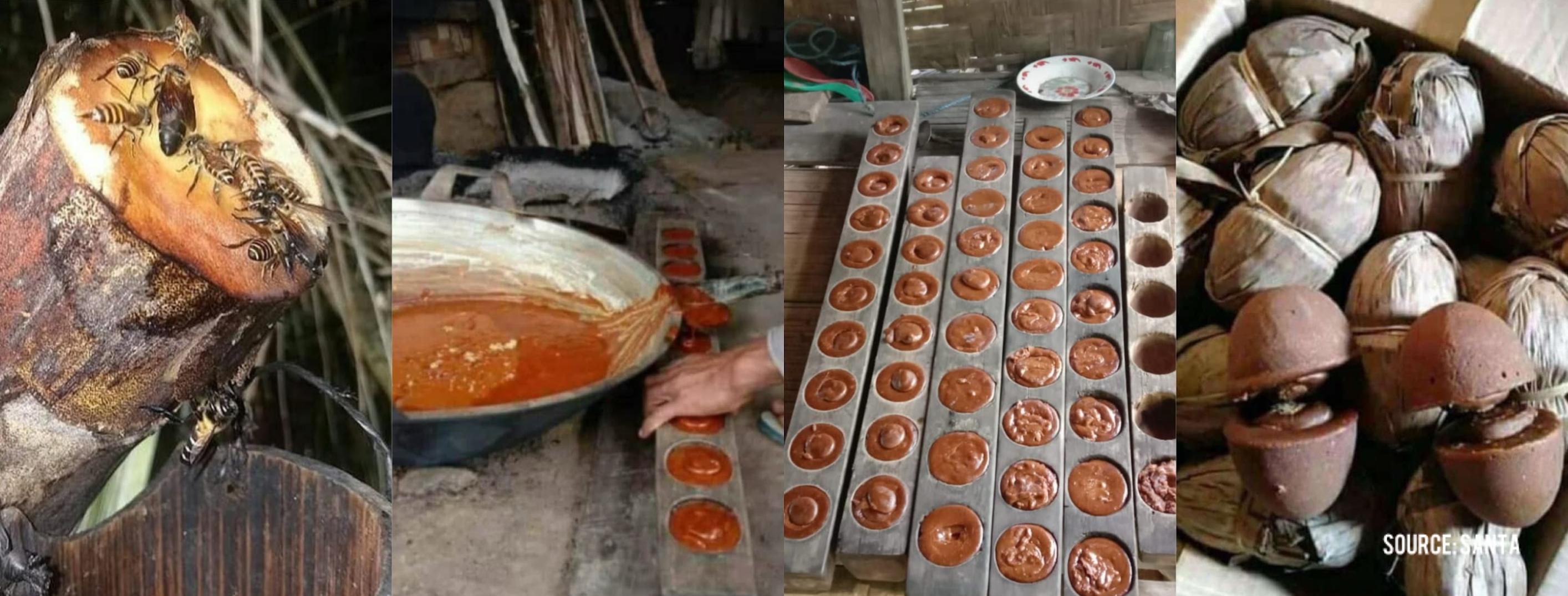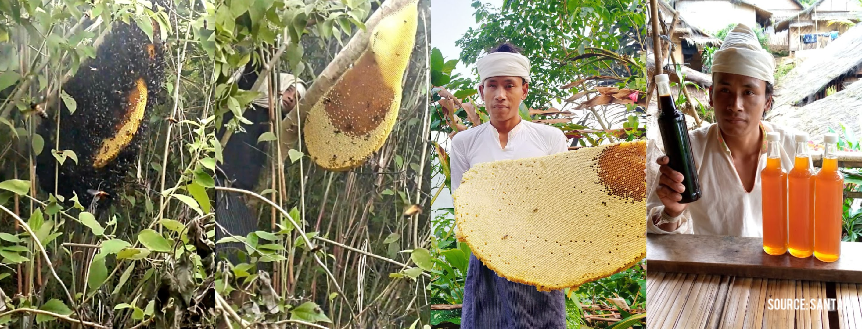 Selain itu, kita juga bisa request buat ikut panen madu hutan. Biasanya kita akan diajak ke hutan lindung mereka buat cari odeng, sebutan untuk sarang madu. Madu diambil secara tradisional, dengan menyisakan sebagian madu untuk regenerasi lebah. Mereka punya 2 jenis madu, yang manis sama yang pahit. Madu pahit terletak di atas madu manis pada sarang yang sama. Madu manis mereka enaaaaak banget!
