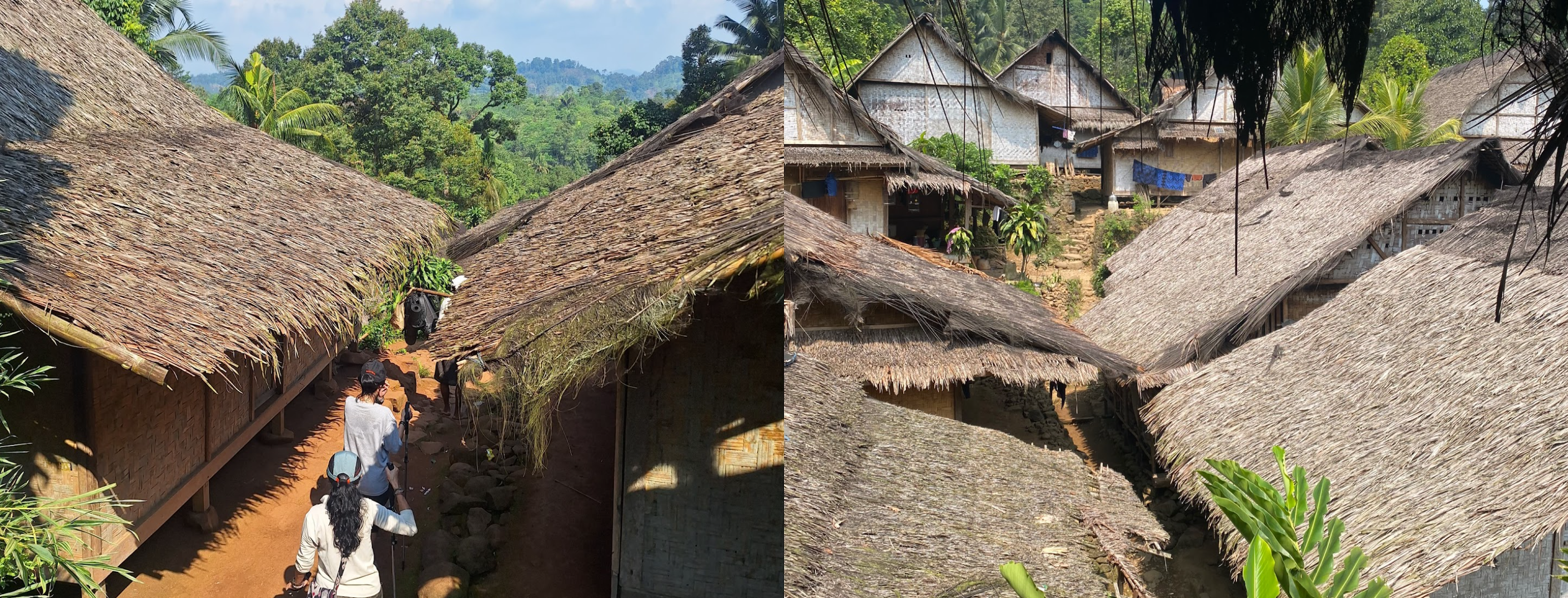Besok paginya, pas udah ada matahari, baru keliatan semua. Rumah Baduy Dalam terbuat dari bambu tanpa jendela. Lantai dari susunan batang bambu, temboknya dari anyaman bambu. Area rumah terbagi 3: