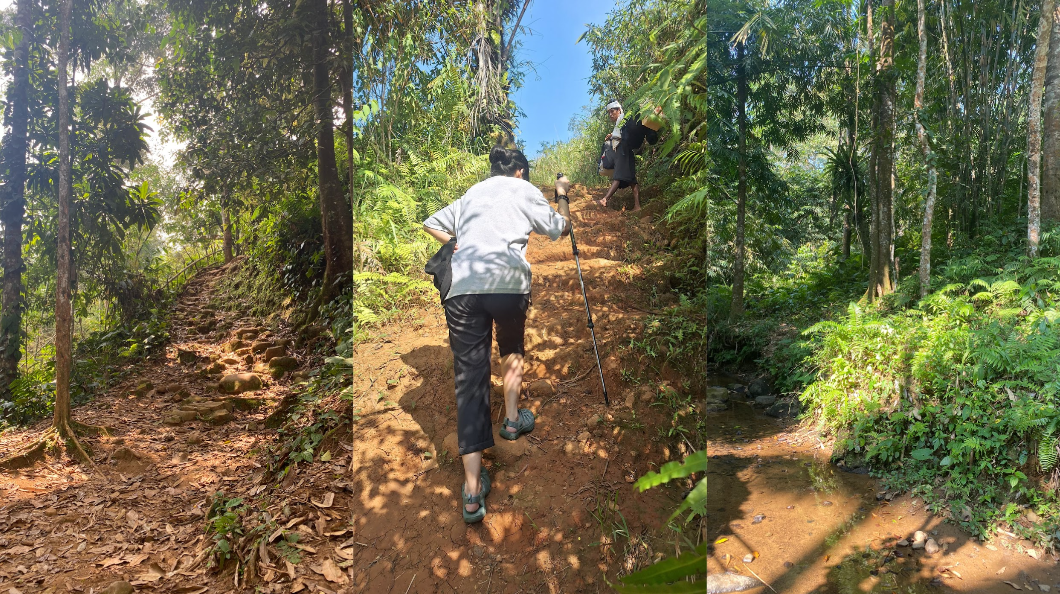 Jalur menuju Baduy Dalam buat gue sih, ekstrim. Medannya ada yang undakan tanah sampai bebatuan. Ketemu beberapa turunan dan tanjakan yang kemiringannya bisa sampai 45 derajat. Udah gitu, kalau kita gak kuat di tengah jalan, gak ada kaya di Sentul yang bisa panggil ojek :D