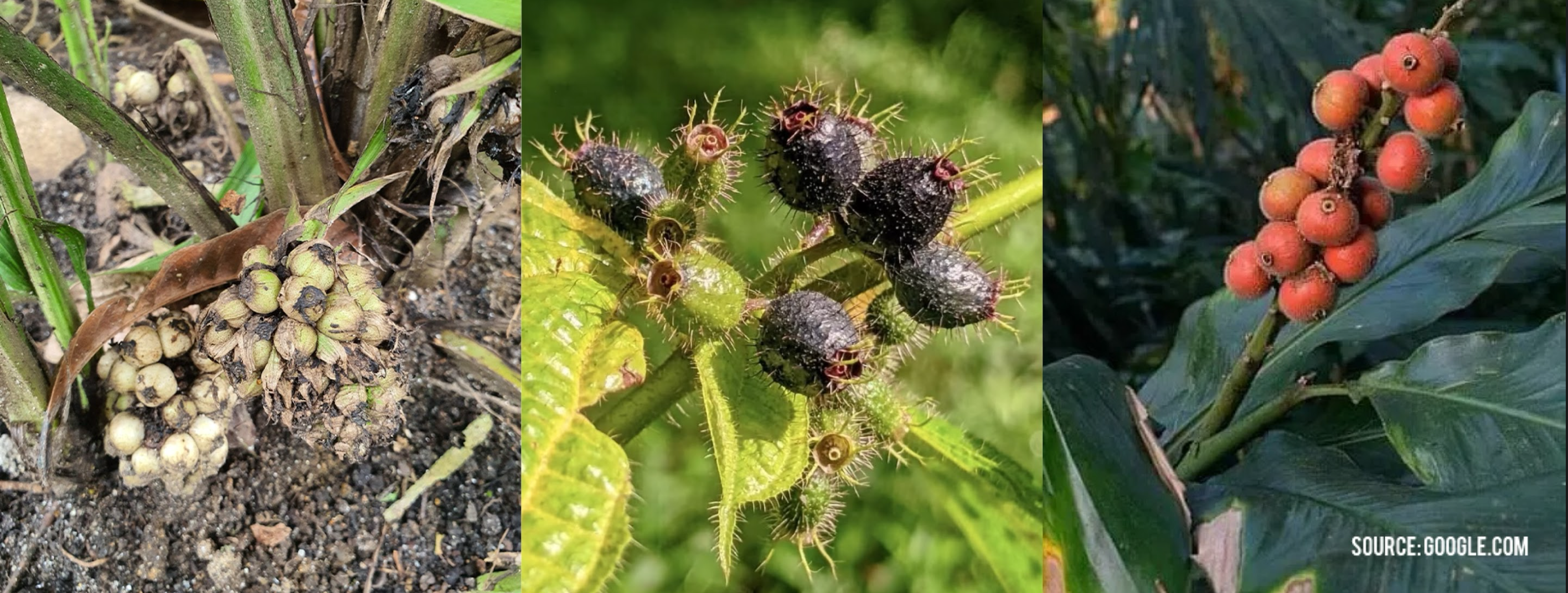 Buah Laja Gowah: Mirip tomat tapi ada bulu halus di kulitnya. Rasanya manis ada hint asam. Bisa untuk anti mual dan muntah selama jalan di hutan.