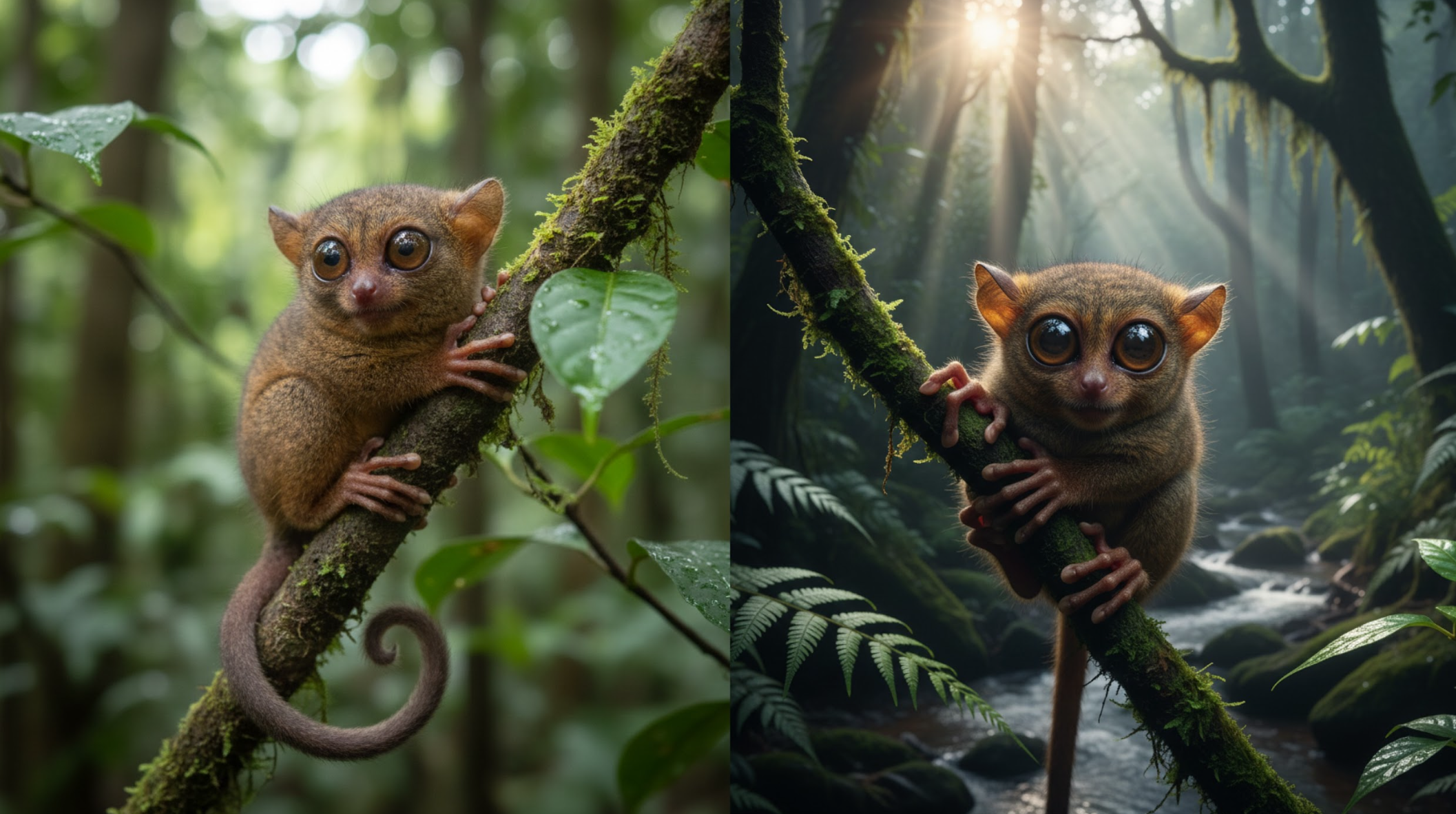 Sering disebut “fosil hidup”, Tarsius merupakan hewan nokturnal yang hanya sebesar genggaman tangan. Mereka dapat memutar kepala 180 derajat, setia pada satu pasangan atau monogami, suka menempelkan diri di dahan pohon saat tidur bahkan saat melahirkan, dan hanya memejamkan sebelah mata. Mereka berperan sebagai pengendali hama serangga, juga membantu petani dengan mengurangi populasi hama tanaman.